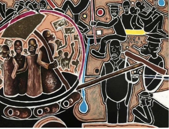His journey began with digital collages. His current practice does not restrict itself to a particular, formulaic style and draws from various African cultures.