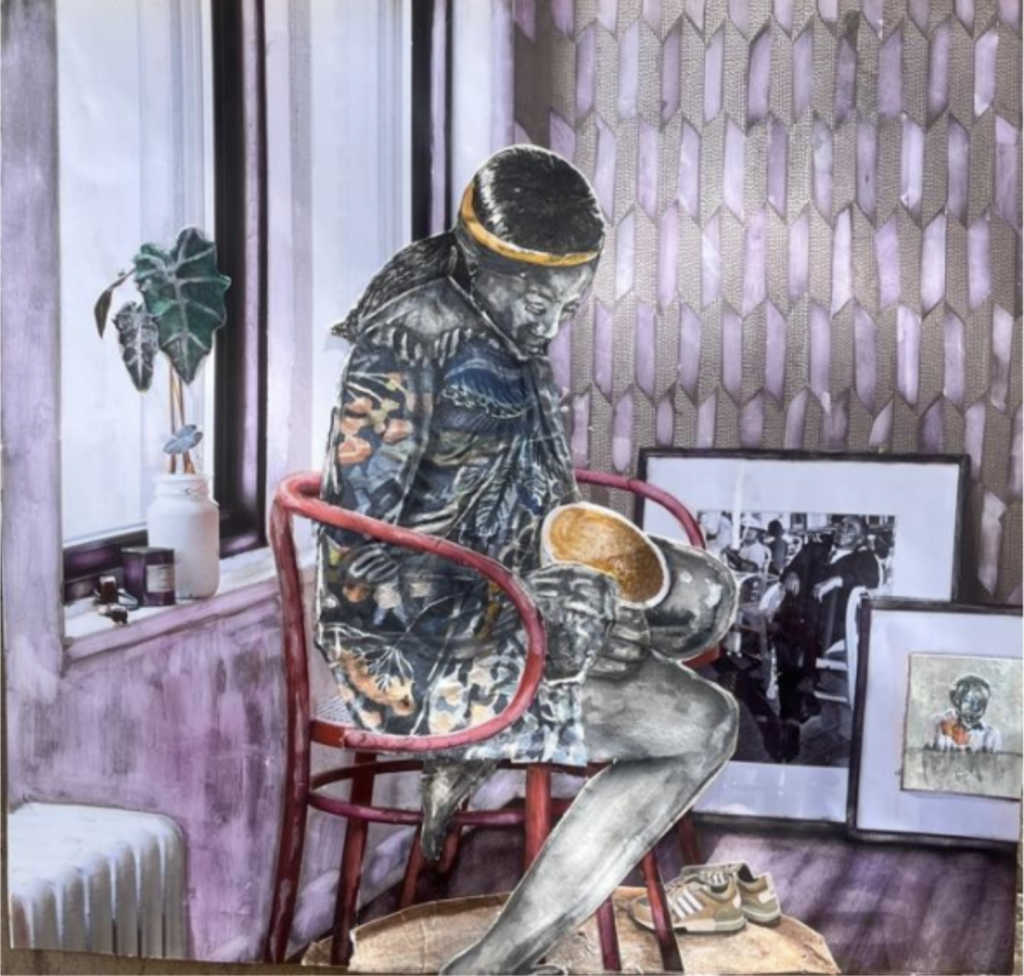 Nonceba’s expresses her reflection in others and others’ perspective of her through colour and texture in her practice. The frame extends beyond the face. The multifaceted nature of her complexity, excellence and the subjects portrayed are unpacked, layer by intricate layer of paint, ink, charcoal, collage, colour and texture which then make up a whole. The entirety is further complicated (or simplified) by negative spaces with silhouettes representing the amplification of others’ presence and/or absence in balance/co-existence which forms the basis for ones relationship with oneself, and in facilitating understanding oneself.